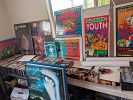 500+ Comic books, 300+ vinyl records, lots of action figures (many Star Wars), music T-shirts, baseball caps, framed and unframed and shrink wrapped movie posters from the 1950s to 2000s and concert posters and band posters from 1960 through 1990, plus video games, graphic novels, Funko Pops, and bobbleheads