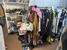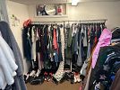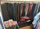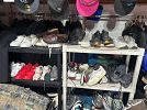 sweat shirt some vintage t shirts , jerseys button shirts shorts sweaters hoodies sweatpants men’s and women’s suits purses scarfs dresses men’s ties hats tons of sneakers and shoes men’s and women’s from 5$ and up , even fill up a bag of clothing for 5$ , we will have a few tables of fill up a bag for 5$ , tons of clothes inside and outside of home . Even have kids clothing as well bulk deals welcomed . Why shop at the mall when you can shop here . Great sale for resellers , all priced to sell , ,More pics to come still in process of setting upl