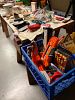 Grill, Razor scooters (2), glassware, vintage fan, mower, clothes, Technic vintage turntable, porcelain pots, jewelry,