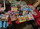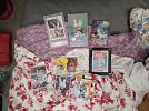 Football/baseball cards (new packs), Yu-Gi-oh! Packs, hello kitty&friends figure (Blind series 3+more) packs, football jerseys (cowboys-Raiders), costume Jewlary (scrap too), Records(LP), DVD, Blue-Ray's, drill with battery &charger, clocks, home wall deco's, family board games,Lamps, Blankets,