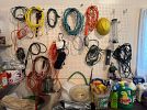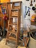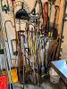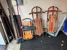 Outdoor: patio table and chairs, rockers, chaise, redwood chairs, ladders, garden tools, planters, snowblower, vintage toboggans and sleds.