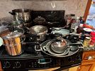 Dining and Kitchen: Small appliances, dishes, cookware, bakeware, Pyrex, silverware, glassware including Waterford and Gorham, Noritake Ivory China “Gallery”, Lenox “Cosmopolitan Collection” Heirloom Colonial Suite silver-plate coffee/tea set, tea cups, and unique tableware for entertaining.