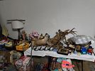 Taxidermy mounts, sleigh bed, household merchandise, yard tools,