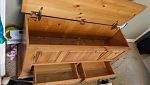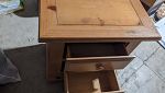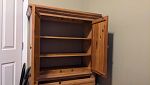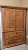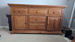 -5 piece pine bedroom set (armoire wardrobe, dresser, 2 night stands, and chest), Bissell carpet cleaner plus soap, LG Roku 49 inch flat screen (small cracked plastic frame, no original remote), various pieces of furniture, wine glasses, huge mirror, tofu press, lots of dishware, baskets, and small decorative items!