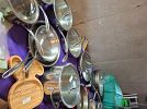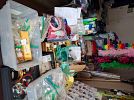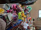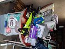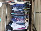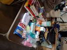 Racks of kids, teens and adult clothing and shoes. Toys, stuff animals including squishmallows, children books, puzzles, girls bikes. Linens, comforters, towels, throw rugs, pillows, throw pillows, Fiestaware cereal bowls, pioneer woman mixing bowls, Calphalon stainless steel pots and pans, high chair, baby crib with mattress, hexagon accent table, lamps, picture frames, wall art, home decor, glassware, kitchen items, artificial flower arrangements, flower pots, yard decor, short cat tower, cosmetics, jewelry, party decorations, Christmas and fall decorations.