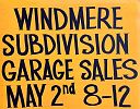 The Windmere Subdivision Garage Sale will be held Sat May 2, 2026 from 8 - Noon. There are at least 12 homes participating. This sale is always a big event so come early.