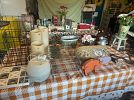 Lots of home, decor items, such as pictures, floral arrangements, pottery, etc. other items, such as kitchenware and home good items.