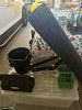 Some hunting and fishing clothing, hunting and fishing items. Some tools.
