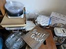 Event food service: Serving trays, serving platters, cutting boards, bread maker, instant pot, condiment servers, buffet trays, glass punch bowl and matching glasses, China set, mini fridge, macaroon tower, and more.