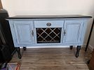 Furniture: Four drawer dresser, three-seater couch, refurbished buffet table/wine hutch, blanket ladder, hexagonal wooden table, corner desk, to bedside dressers, wooden buffet table, large mirrored bathroom medicine cabinet, six shell bookcase, rattan wooden table, 9 cube storage shelf, ergonomic office chair, kneeling office chair, under desk mats, and more!