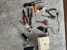 large ceramic flower ,various large ceramic vases and flowers ,swimming pool leaf skimmer net large garden shears ,mouse keyboard ,various small tools hammer, scissors, etc.