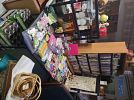 3 bays full of goodies! Toys and games, lamps, glassware, clothing (men and women), shot glass collection and display cases, a few tools, households, books, dvds, curtains, Barbies, dolls, calculators, clocks, leftover floor/wall ceramic tiles (12x24), and much more.