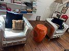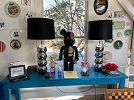 Fabulous sale with so much to see! Bearbrick KAWS 28" 1000% dissected OriginalFake collectable, Laurie Simmons Kaleidoscope Doll House, 7 foot Crate and Barrel dining table, pair of red Crate and Barrel leather chairs, vintage RL looking brown leather club chair, indoor ping pong table, 1985 signed LA Lakers Champions photo, framed signed NBA and NFL Jerseys, KAREM SIGNED JERSEY and other signed sports memorabilia, designer clothes and bags, black lacquer square woven coffee table, Serena and Lily coffee table (project), 2 large floor mirrors, Marimekko linens, lamps, rugs, many blow up mattresses, British street artist The London Police, artwork, books