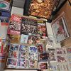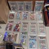 • 🧢 Sports memorabilia – graded slabs and single cards. Two Chicago Bears wooden hanging pictures Kevin Butler and Curtis Conway. Lots of loose cards and sealed Classic Baseball blister packs.