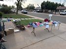 Large selection of young girls clothing, some women’s and men’s clothes, shoes, brand new T-shirt blanks, kitchenware, books & toys, watches, golf clubs, assorted decor and more.