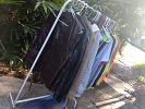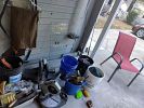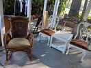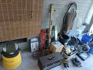 Chairs& center table, coffee table, wood rocking chair, window A/C unit, clothes& jeans, cat ladders&homes., Bike all sizes handle bars +..., Tools all kinds + hardwares ect , 2- older table saws, new in box bathrm large wall med. Cabinet, fishing pools,lots CD,s.