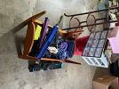 Tools/Outdoor: Folding workbench, fishing gear, and backyard chairs.nhiking backpacks