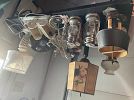 Home Decor: Antique lamps, brass planter, mirrors, and a red Oriental rug.