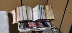 1966 Ford Mustang parts and many misc items: Cobra valve covers, new chrome grill pony convertible trim pieces, original oil and air filters, mechanic creeper, Mustang fender cover, Classic mustang complete maintenance and restorati&library, and never used McGuire's professional dual action elec. polisher. 26 trophies.