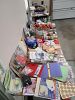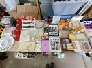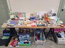 Hundreds of items for sale, most of which are $2 or less. Handmade crafts, wedding signs, vases, garland, pastry stand, cupcake corers, women's small and medium shirts, women's size 14 pants and jeans, men's 3X and 4X t-shirts, reading glasses, prescription eyeglasses, seasonal decorations, food storage containers, and dozens of 25¢ items.