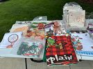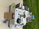 Lots for new men’s, women’s, children’s clothes. New shoes, house items. New cushions cover, exercise clothes, dresses. Used bike rack and clothes.