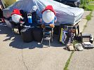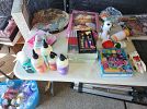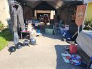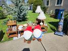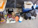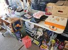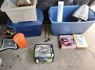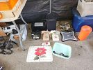 Vintage electronics including tube testers, and photo/dark room supplies. Meade autofinder digital telescope, household items, propane stove for camping, car refrigerator, porcelain toys, framed pictures, table lamps, coffee table and end tables from the 1950s, compressor/sprayer, file cabinet, aqua kickboxing bag and much more