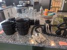 Some tools, lots of dishware, kitchen appliances, king mattress & adjustable frame, queen mattress and platform bed, counter stools, sectional couch, night stands. Deals to be had!