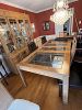 Appliances, tools, bicycle, fan, kitchen island chairs, white leather sectional couch, dinette table and chairs set, futon, hutch, king size headboard and bed frame, dog kennels, air hockey table, clothes, household wares and more!