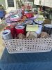 Pine cones, acorns, bottle and jars, wreath making supplies,florals, some scrapbooking materials, wooden items to paint or craft, old buttons, burlap, ribbons, tulle, glass paint, embroidery, glitter, markers, paint brushes, jewelry making supplies, raffia, outdoor fabric, too many items to list.