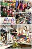 Fleece, NEW baby & Children’s clothes , buttons, pots, vases, wire rolling shelves ($100 & $125 firm), large pictures, plus size women’s clothes (fill a bag $1) size 6 women shoes ($1 ea)