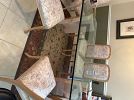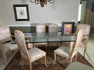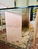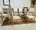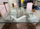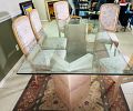 9-Piece Vintage Italian Dining Set: Postmodern Pink Marble Glass Table with 8 Carved Armchairs