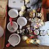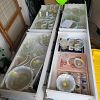 TONS OF CROSS STITCH, TODO MACHINE PRACTICALLY NEW, HANDMADE WOOD PLANTERS, ROBIT KITTY LITTER BOX, KNICKNACKS, LOTS OF MOONSTONE CHINA, DESK W/ SHELF, TV'S , ANTIQUE ASHTRAYS, HAND PAINTED SAW BLADE, BASKETS, SEWING MACHINE, SAIL RITE FABRICATOR MACHINE NEVER USED AND MUCH MORE.