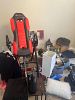 Double reclining faux leathersofa, reclining faux leather chair, extension table, coffee tables, bedding, lots of house goods, bench, art, lamps etc.