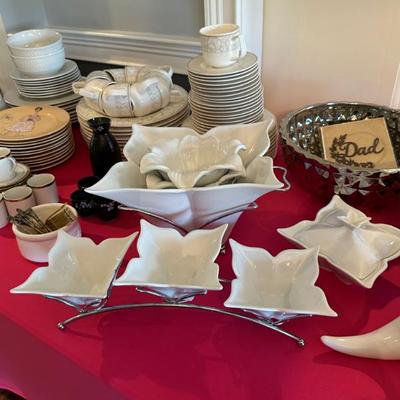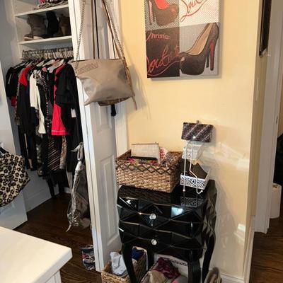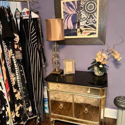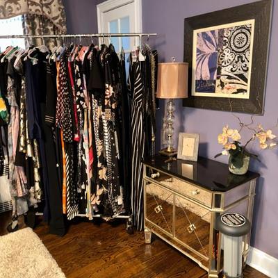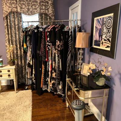 Please Join Us in Oradell for a FANTASTIC TWO DAY SALE! Full furnished decorator home; impeccable taste and designer fashion.Please view all photos as not all items are listed below. Home Goods & Decor Art & Prints:Framed art print of "Reclining Nude" by Amedeo ModiglianiFramed Henri Matisse Art PrintFramed print of Pablo Picasso's "Don Quixote"Framed print of Pablo Picasso's "The Piano" (1957)Furniture:Lladro - Flamenco DancerArthur Court Footed Serving BowlBassett Mirror Borghese mirrored accent chestVenetian style giltwood coffee table with glass topLouis XV style mirrored console tableFrontgate ETIENNE ACCENT TABLEButler Donato Metal and Stone Console TableUpholstered Sectional SofaStorage OttomanSwivel Counter StoolsArm Chairs & Accent TablesUtility CabinetFolding ChairsDining Table and Chairs from FrontgateMirrored Jewelry Cabinet (wall-mounted)Rugs:Oriental Weavers Stella 3261B Grey/Gold Area Rug (likely 8 x 10)Lighting:Standing floor LampsTable lampsAccessories:Faux Flowers & FruitEtagere with Glass ShelvesVintage Round Wall Mirror (Gold Tone)Venetian Style floor Mirror Kitchen & Dining Dinnerware & Serving:Everyday DishesAssorted Serving Baskets & PlattersGorham Golden Ribbon Edge FlatwareLenox “Monroe” StemwareMacKenzie Child OwlAnthropologie Patina Vie double old-fashioned cocktail glassesTiffany & Co. Crystal BowlArt Glass and various dishes from multiple makersAppliances:Keurig Coffee MakerOsterizer BlenderHand MixerProctor Silex Food ProcessorPhillips Dual Espresso MachineCookware:Pots & PansCooking utensils Clothing & Accessories Clothing:Varied sizes (XS-Med/Large)Brands: Alice & Olivia, Tory Burch, Gucci, Prada, Chanel, Valentino, etc.Shoes:Women's shoe size 4.5/5Brands: Ugg, Jimmy Choo, Christian Louboutin, etc.Outerwear:Fur CoatsHandbags & Accessories:Brands: Burberry, Michael Kors, Gucci Marmot in Ivory, etc. Collectibles & Miscellaneous Collectibles:Norman Rockwell Collector PlatesSwarovskiLenoxFabergé Nadya red cut crystal votive candle holderLotton Art Glass vaseVintage tessellated stone boxVintage 7x50 binocularsMiscellaneous:Beach ChairsToolsCleaning ProductsOffice ChairFiling CabinetHoliday DecorSchwinn 226 Recumbent BikeAudio Technica TurntableStereo