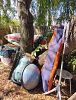 Retro clothing, lamps and housewares.Lots of women's clothing size XS To XLL. Cooker for boat or camper.Does not have propane tank. Ikea white bowls, 3 tier metal magazine rack vintage. Vinyl records, C.D.s, VHS, Cassettes, Books, games, and puzzles.
