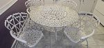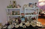 This quaint home is FULL with kitchenware, China, costume jewelry, vintage crystal and stemware, holiday decor, Women's clothing & shoes (L-XL - shoe size 8-8.5), CD's, French Provincial Coffee table and end tables, vintage white tufted sofa and chair, beautiful bedroom set and dinning room set from the 1950's, Lladro'a, numerous pieces of Lenox, Lenox Christmas items, Vintage Christmas Fitz and Floyd, CD's, Cassettes, collectible dolls, vintage linens, towels, handbags, awesome vintage cast iron round table with 4 chairs, lots of nic nic nacs and so much more!!!