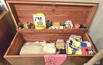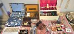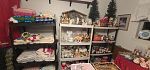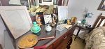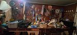 This house is packed to the gills.From jewelry to furniture, clocks, decor dishes , beds , dressers , vintage clothing , vintage christmas , vintage toys , roll top desk, sofa, round oak table with 4 chairs. Hope chest , beautiful , handmade christmas sequins tablecloth, vintage christmas items , a multitude of them , chest of drawers , small desk, humpback trunk, antique dresser , with mirror small bookshelves , large bookshelves, mirrors, lamps, paintings, buffet. Kitchen items, betting books, electronics. Garage items, meeting items are even outside because we have no room. Too many items to even display