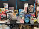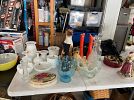 We have a lot of vintage glass. The clothing ranges from size medium to 3X for ladies and two and 3X for men. We have lots of shoes, games, tools, blankets, coolers, small appliances, cookware, and designer, jeans, toys, records, dvds and so much more