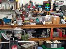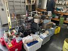 So many tools and auto parts. Shelving, large fans, some men’s clothing.