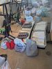 Southwest art, household goods and items, LOADS of fabric, LP's, C/D's, Tapes, VHS, tools, Model Train Display Case, Books, Magazine, Games, Casino items, gardining tools, cleaning supplies, Women's clothing, Shoes, Vintage Camera/Film equipment, almost something for everyone.