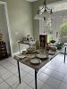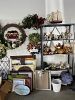 Lenox holiday china, Princess House, MacKenzie-Childs, Longaberger, Vera Bradley, Carruth, Baldwin brass, Stiffel. Glass serving ware, some antique occasional tables. Cedar chest, MCM wood slat bar stool pair, Singer sewing cabinet. Assorted garden tools, vintage toys and games, holiday decor. BRING YOUR OWN BAGS OR BOXES!