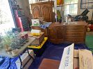 Golf clubs/accessories, glassware, Royal Albert China teacups, collectible beer steins, telescope, bedroom set, DVDs/CDs, furniture, and much more