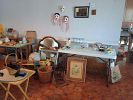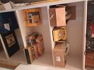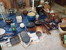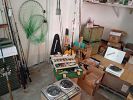 Tables, chairs, a breakfront, electronics, vintage barware, glassware, bottles, paintings, jars and jugs. Vintage stained glass hanging light, Clothes, vintage clothes hangers, coats, collectibles, 1940’s dollhouse with furniture. Signed celebrity pics. 1940 Lionel train set, vintage toys, hand tools galore, power tools, garden equipment, spreader, garden pots/planters. Lifesize VenusDeMilo statue. Vacuums, tons of hardware, fishing equipment and so much more.