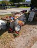Kitchenware. Books. Electrical items. Variety of tools. Rope. Canvas boat shade. 9' cypress door. Steel patio table with umbrella. Lots of glassware. Log chains. Antique trunk. Antique pump.
