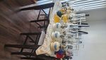 Lots of bar glasses,lot of oil lamps clothes,crystel glasses wine bottles