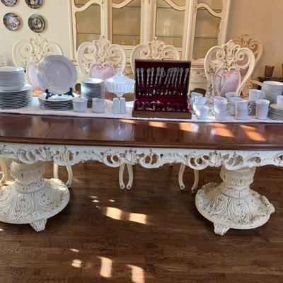 Join us for this beautiful high-end estate sale in Plano. Beautiful furniture, home decor, antique pieces, custom French provincial dining room table and China cabinet, unbelievable Capodimonte porcelain lamps and flowers, clothes, garage items, washer/dryer, collectibles, Dickens Village houses, Waterford crystal, bar ware, multiple dish patterns, marble top tables, artwork and designer handbags including Coach, Michael Kors, and LOTS of Brahmin bags! All window treatments/curtains are also for sale.