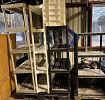 Everything under the sun. There is a whole bunch of Vintage household in boxes, glassware plates, all kinds of interesting fines, some clothing there are curtain, rods, and lots of furniture, desks, outdoor bar, indoor chairs, outdoor chairs, end tables, side tables, plant holders, umbrellas, tables, garage doors, battery boxes, faucets, fireplaces, kitchen, cabinets, windows, storm doors, outdoor lattice, window screens, blinds, closet wire and hardware, kitchen table with chairs, headboards, chest, dresser, gas tanks, all kinds of random items and interesting finds. Cash please.