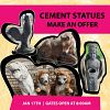Several cement/concrete statues available. Various sizes and styles. Great for gardens, yards, or landscaping projects. Some pieces are in better shape than others. Everything must go so come make an offer.
