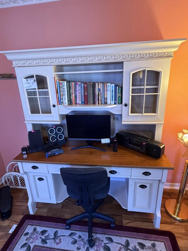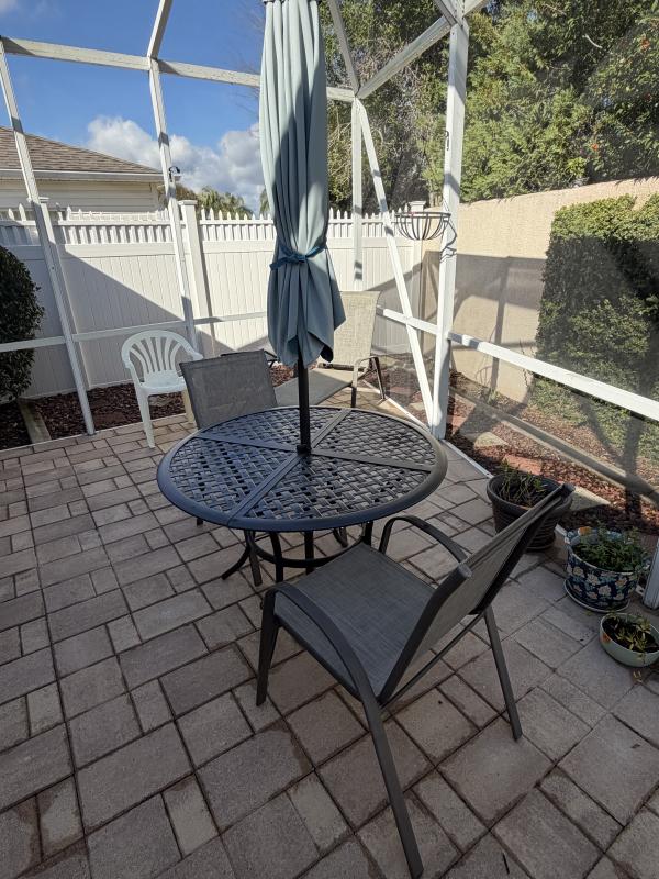 This lovely villa is beautifully furnished and filled with quality pieces in excellent condition. It features two full bedrooms, one with a queen bed and the other with a king, both impeccably maintained. The third bedroom offers a versatile trundle bed with mattresses in great condition that easily convert into a comfortable king-size bed—perfect for guests. The home includes a high-top butterfly leaf dining table with a matching wooden buffet, as well as a charming wrought-iron and glass-top kitchen table. Outdoors, you’ll find 2 patio tables and chairs ideal for relaxing or entertaining along with a BBQ Grill. Additional highlights include two wonderful ladies’ bicycles, a selection of women’s clothing in sizes 2–4, and a well-equipped kitchen with dishes, glassware, and cooking essentials. The garage features sturdy metal shelving units for practical storage solutions. All items are in lovely condition, as this home was used lightly as a vacation retreat. The owner has since relocated to South Florida to be closer to family. Stop by and discover beautiful, well-cared-for pieces ready to enhance your home.