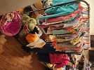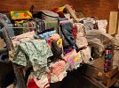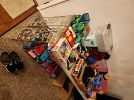 Lots of toddler clothes abd shoes, toys, household goods, chest freezer, queen size bed frame, children's outdoor toys, toy storage, camping items, men's clothes, puzzles and lots more.